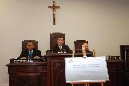 | A cerimônia de inauguração das obras no Fórum de Ouro Preto foi presidida pelo desembargador Sérgio Resende (centro). |