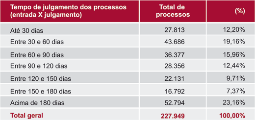 foram julgados em menos de um mês. O tempo de julgamento exclui o prazo de permanência dos processos